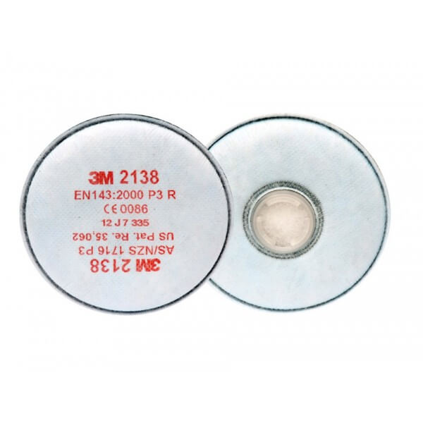 Particulate Filters 2138 protect against solids and liquid particles P3R, with extra protection against organic and acid gases, vapours under limit, as well as ozone up to 10 x TLV. Additionally against organic vapour and acid gases below OEL. Suitable for use with 3M™ 6000 and 3M™ 7000 Series Half Face and Full Face Masks.