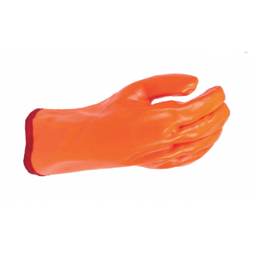 PVC freezer glove with fur lining for hygiene and wet conditions.
